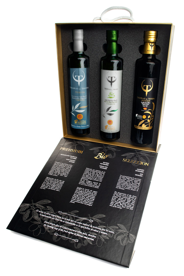 Estuche degustación con tres botellas de aceite de oliva virgen extra Picual: